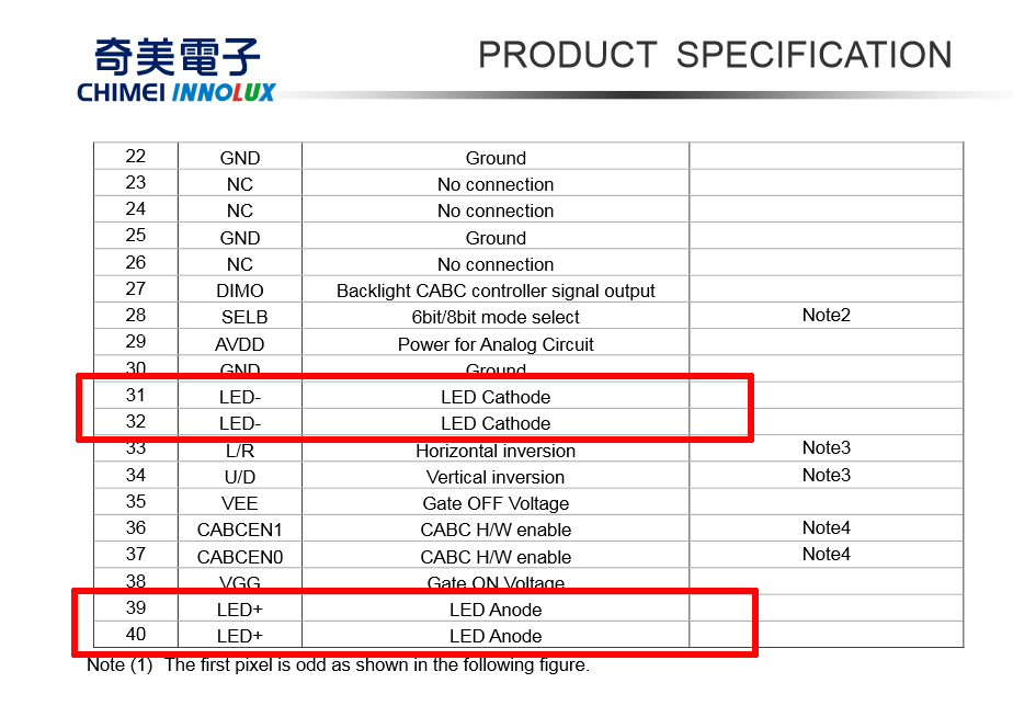 Посмотри даташит на матрицу - там же все ясно написано: И еще почитай в даташите про 27 ногу (а еще 36 и 37). Матрац умный, это выход диммера, им тоже как то регулировать можно... |
