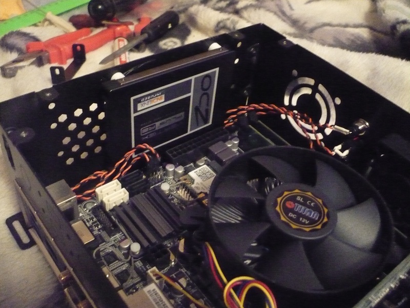 Вчера начал и сегодня закончил окончательную сборку системника,укоротил косу,установил блок питания и жёсткий диск.Пришлось повозиться чтобы всё поместить в корпус.Этот корпус изначально не рассчитан под блок питания 4м,но всё поместилось.Решил всё же поставить всё в багажник,в идеале подвесить усилитель и системник к задней полке.Осталось докупить кое-что по мелочи и думаю в следующий приезд с работу всё же установлю комп в машину. |