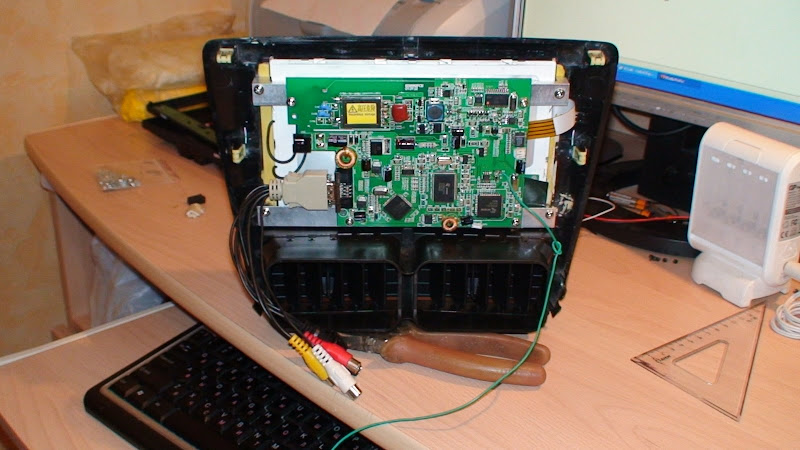 и закончил с креплением монитора, на тыльной стороне кнопки монитора (на всякий случай) ИК-приемник поселится в воздуховоде за системник ни как не возьмусь, вот это все нужно уместить в "двадин" PS если картинки будут не видны пишите в личку а не здесь!!! |