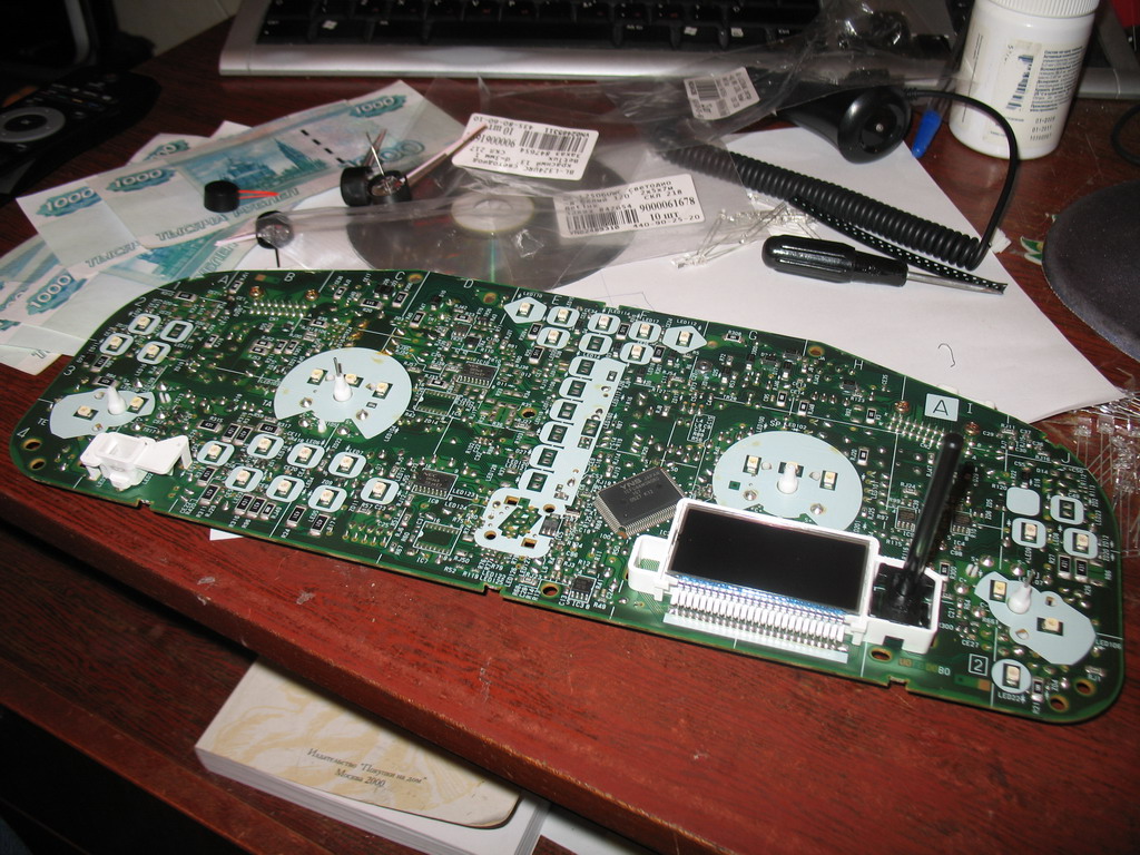 Снял и разобрал приборную панель, заменил 6 светодиодов на белые (вся подсветка в мазде 6 красная), купленные в "чип и дип", вот эти http://www.chipdip.ru/product/bl-ls1206uwc.aspx По размеру он меньше чем выпаянный штатный, но на контактные площадки встал нормально, на фото есть сравнение размеров Так же были заменены лампы накаливания в блоке климат контроля на белые 5 вольтовые светодиоды (давно валялись дома) через сопротивление 1 килоом, на фото показано как это резистор прикручен В самой плате климотконтроля ничего выпаивать и впаивать ненужно, светодиоды и резистор на 1 килоом вставляются в штатный цоколь, где до этого крепилась лампа накаливания. Светодиод сделал матовым, для равномерного рассеивания пучка, напильником. Заменены 2 светодиода (такие же что и в климотконтроле) под кнопками штатнго дисплея. Ну и на последнем фото конечный результат с белой подсветкой и как было с красной. И того данный пункт ТЗ выполнен ![]() Последний раз редактировалось ZXprSL; 22.02.2011 в 23:24. |