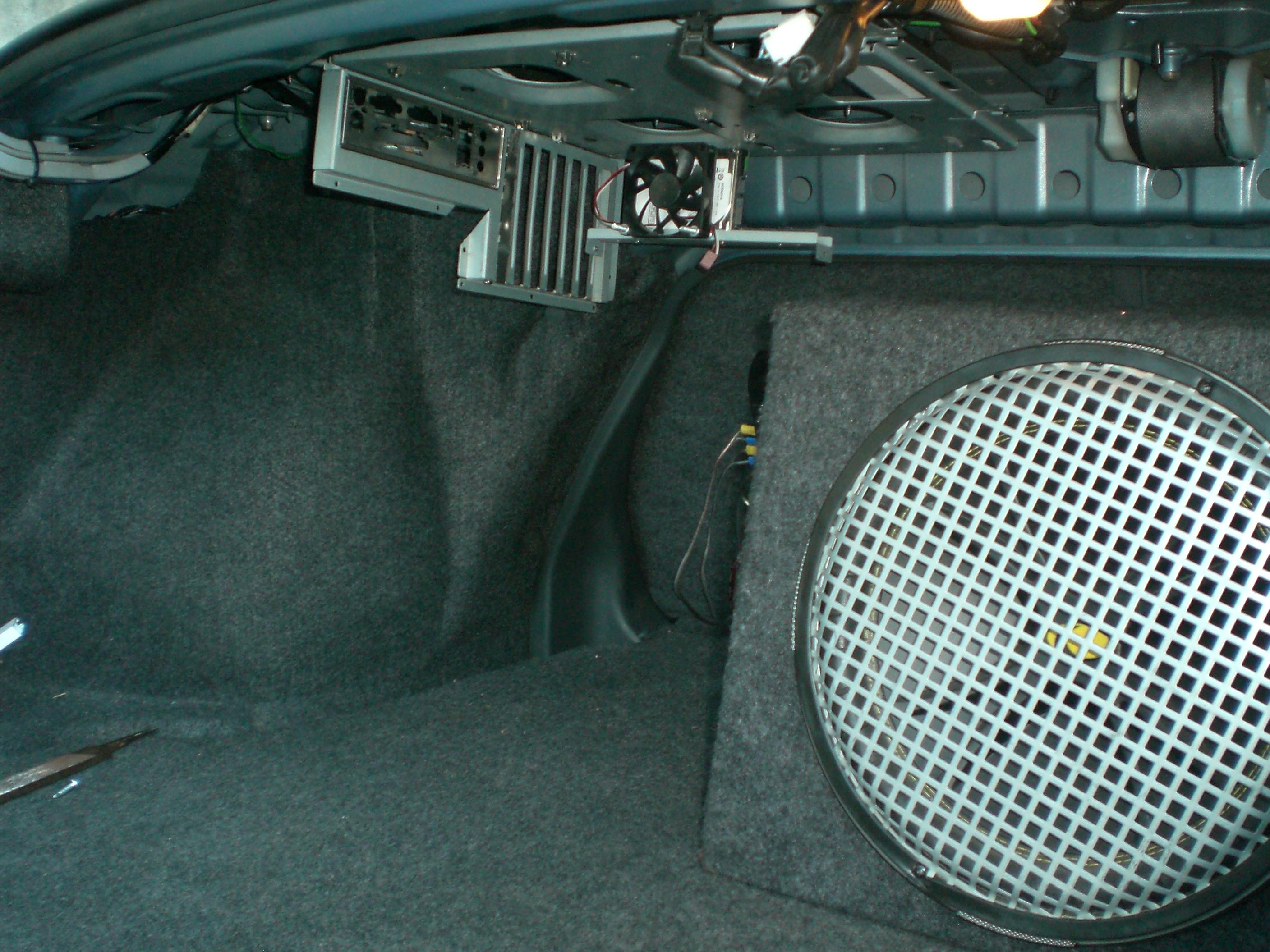 А "исчо", как говорила Екатерина вторая я наконец-то нашел подходящее место для компа, ибо его фиг куда засунешь. Такая большая машина, а маленький комп девать некуда. Вообщем что вы об этом думаете? Сразу скажу что вариант не окончательный, скорее всего будет еще сверху кожух...