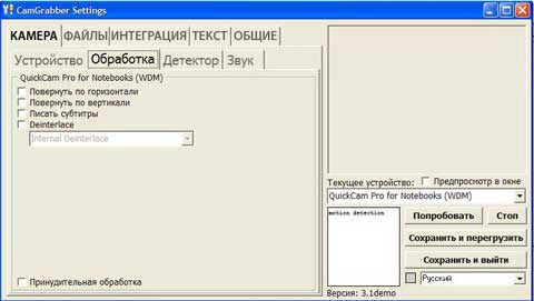 Первый раз попробовал эту софтину, до этого юзал Capture!.exe с дружественного зарубежного форума (тоже бесплатная, написал тоже чел с форума). Хочу сказать спасибо за софт! А теперь такие моменты: Запись звука. Зачем звук дублируется в колонки? Разговор в машине отдается в них эхом! Пользоваться невозможно.В англ. фразах есть ошибки, в т. числе при создании log. Могу пофиксить за спасибо (я преп. англ. яз по образованию). (если интересует плиз в личку, нужна тогда последняя версия ланг файла). В состоянии minimized хорошо бы было иметь небольшую анимацию на иконке в трее, чтобы было понятно, что камера подключена и работает. Причем там должны быть какие-то данные с детектора движения. Камера может отключиться или съехать, а когда понадобится смотреть запись, обнаружишь что ее не было. Неплохо было бы иметь свою функцию авто-экспозиции (т.е. сложения соседних кадров для увеличения яркости ночью). В системе она уже есть, но ночью иногда недостаточно. Последний раз редактировалось AngelOfGrief; 05.09.2009 в 18:16. |