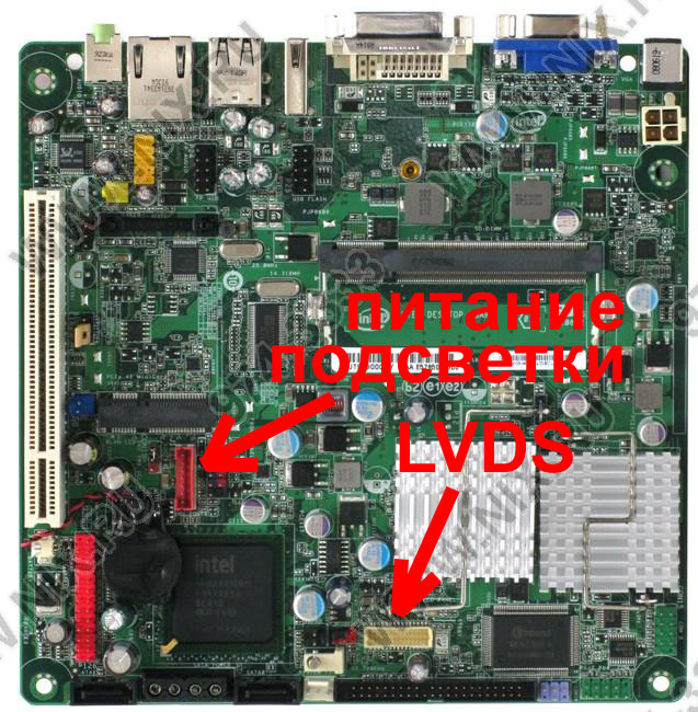 Покажи пожалуйста где на этой материнке этот самы LVDS, и каким образом подключить матрицу от 701 по этому интерфейсу