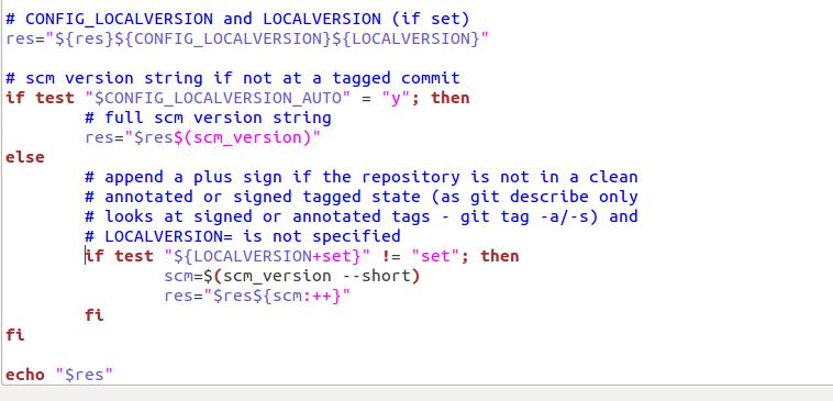 в файле ./scripts/setlocalversion поправить в районе строки 166, закомментировав после else Скрины для наглядности. Вложение 29648Вложение 29649 |