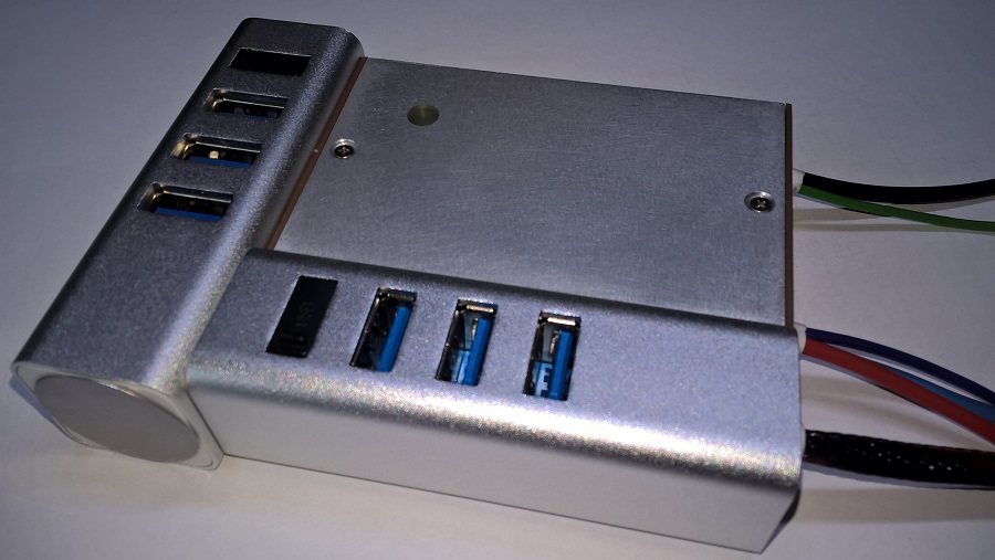 Представляю один из вариантов составного HUB-а, построенного из двух пассивных HUB-ов на чипах GL3520, доработанных по такой технологии.