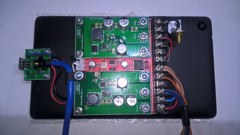 Закрепить на крышке планшета можно, как ниже на фото. Вложение 52296 Напомню, что сечение проводов от АКБ до БП, желательно делать, как можно толще. Поскольку отслеживание напряжения на аккумуляторе авто ведётся на входе блока питания, то потери напряжения на длине проводов нужно минимизировать. Ещё раз спасибо, за выбор моего БП! |