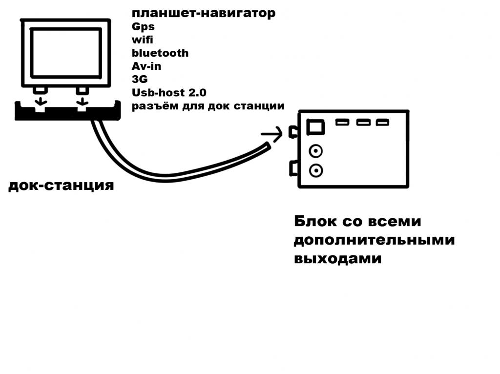 :smile1:,не видали вы уральских зим с -40))у нас -15 и весною может быть в начале мая:smile1: 1-дин имеет право на существование.забываем про владельцев жигулей..и других машин,которые ещё с СССР ездят неплохо Планшет+2din бокс,подобное решение есть у китайцев и там всё есть. 2din-просто так же как и 1-диновый.. Я бы предложил и предлагал вариант планшет-навигатор с видео-входом и видео-выходом,к которому можно подключить 1-ну фронтальную камеру(или камеру заднего вида) и основной бокс(со всеми возможностями), через видео-кабель (как монитор к системному блоку) Т.о. Любой водитель может кататься либо с планшетом-навигатором и забирать его с собою,либо подключать по одному кабелю к боксу,который можно расположить где угодно(в бардачке,под сиденьем) и от которого пойдут уже другая периферия..Вложение 29508 док станцию можно размещать на любом месте торпеды,практически в любом авто.. док-станция в качестве держателя для навигатора.При забирании навигатора в карман,практически не видна глазу. Крепится на пару винтов(двухстороннюю ленту ЗМ)+отверстие в торпеде(можно и просто провести кабель ) для кабеля. Вы же делаете новый проект,непохожий и не имеющий аналогов)Таких аналогов,кроме как у кулибиных я не видел) Блок реально разместить в любом месте,главное чтобы позволила длина кабеля.. |