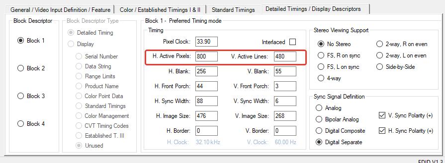 Я так ради интереса вынул EDID из HDMI входа этого джамперного контроллера и вижу, что он вообще странный какой то. В установленных таймингах вроде перечислены все низкие разрешения. Вложение 52703 А вот в стандартных нет ни одной галочки. Т.е. среди стандартных разрешений, которые должны ориентировать видеокарту, нет ничего. В нативе вижу только одно - 800*480. Вложение 52704 Хотя, возможно эту прошивку я когда то слил с джампером в положении на 800*480. Но что то все равно вопросов больше чем ответов. Полазил бы поизучал в свете вашего вопроса, но я от них уже избавился и под рукой нет ни одного. Цитата: