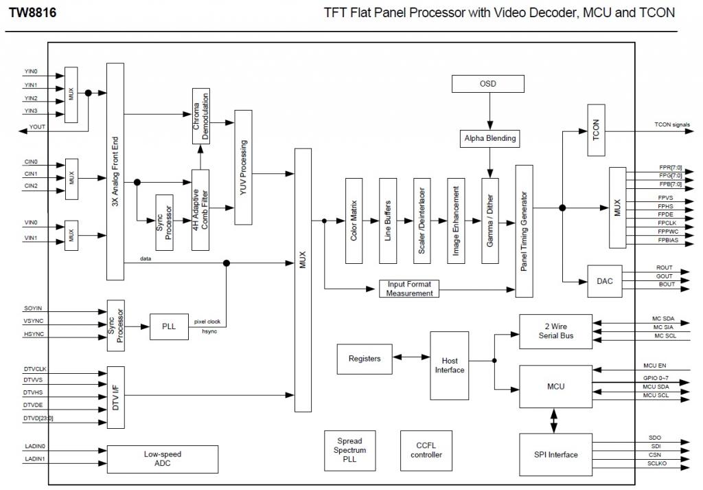 Смотрим структуру наиболее известных скалеров: Вложение 37460Вложение 37461 Все сначала преобразуется к YUV - яркость (Y) и две цветоразностных (U и V). HDMI, CVBS, YPbPr, RGB -> YUV. А YUV и есть практически RGB после несложных преобразований. |