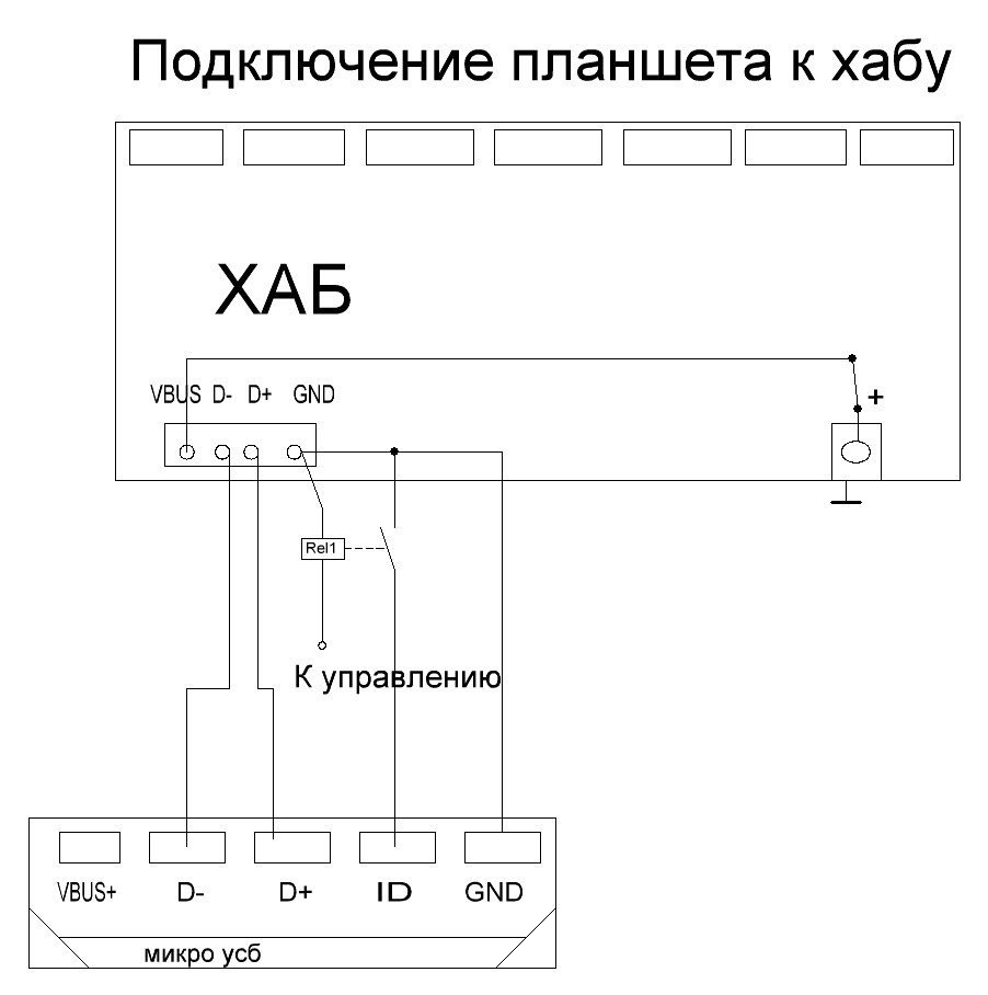 вот по такому принципу ,только вместо реле в хабе врезал выключатель ,им на минус коротится отг-конкакт хаб "HAMA", брал в магазине ,качесво сборки норм |