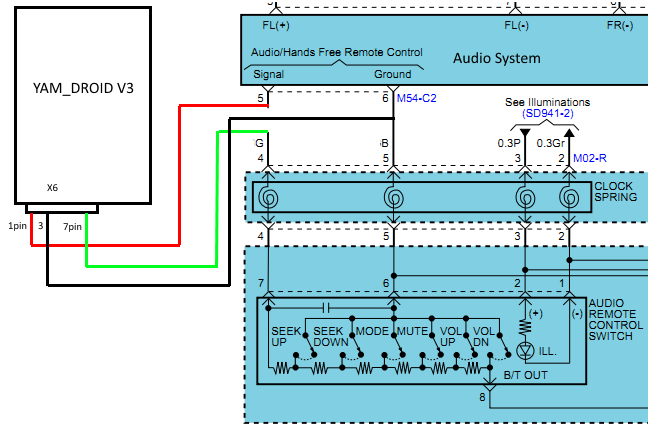 Дошло дело до подключения резистивных, штатных кнопок руля. Кнопки с контроллером подружились, при выводе сигнала из разъема Х6\1, на магнитолу, нужные напряжения появляются! Но, на входе магнитолы - 5(signal) так-же есть напряжение 5в, должно ли оно там быть, и правильно ли я подключаю контроллер? (Подключив как на схеме получаю хаос при нажатии любой кнопки) P.S. Авто Kia Cerato 2Gen, схема от нее же) Вложение 37197 |