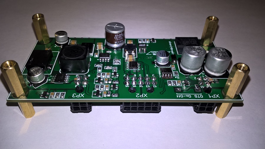 БП для требовательных систем с током потребления выше 5А. Блок построен по модульной схеме: отдельная плата DC-DC преобразователя на микросхеме MP8762 в корпусе QFN 3X4 и отдельная плата контроллера управления на Arduino Pro Mini. На плате контроллера также располагаются каналы: