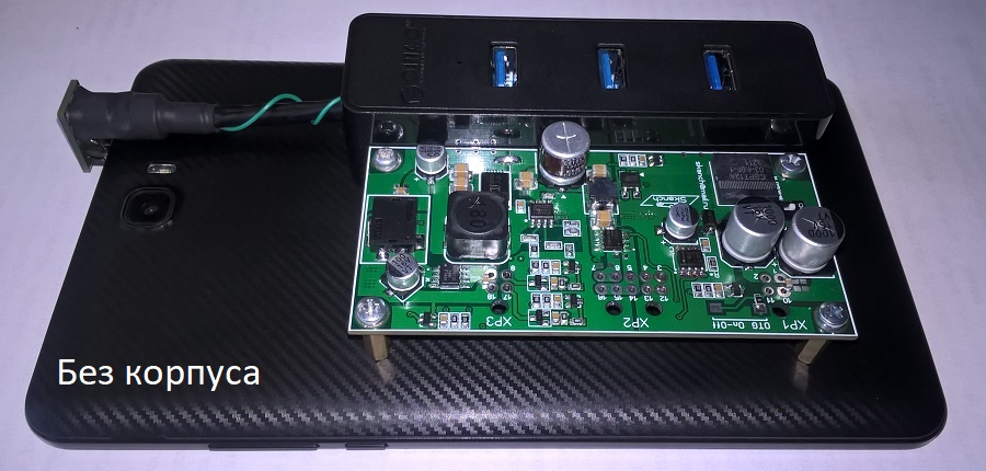 Выход "OutBut" для подключения кнопки питания планшета или одноплатного компьютера теперь с возможностью выбора управления по одному проводу (коммутированная масса) или по двух проводной схеме (два провода от кнопки питания замыкаются друг с другом). Выбор варианта управления производится переключателем "OutBut. Control" на плате: в положении "ON" - однопроводной режим, в положении "1"-двухпроводной. Вложение 50640 Вложение 50641 Вложение 50642 Вложение 50643 Вложение 50644 Вложение 50646 Вложение 50648 Блок рекомендую устанавливать прямо на заднюю крышку планшета. Размеры платы сделаны под стандартный корпус G1005025B. Варианты крепления на планшете вместе с HUB-ом. Вложение 50652 Вложение 50653 Вложение 50650 P.S. Подбор компонентов и удачная реализация трассировки этой платы позволили получить выходное напряжение с достаточно хорошими параметрами: на канале питания планшета при нагрузке в 3.9А и выходном напряжении 4.38В пульсации на выходе 40mV max, на канале питания HUB-а при нагрузке в 3.9А и выходном напряжении 5.2В пульсации 60mV max. Измерения проводились в тестовом режиме для проверки максимальных возможностей блока питания. |