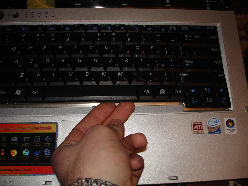 Первым делом как освободился от личных дел-выкинул всех китайцев из машины(саб и усилитель).Усилитель твикнул и положил дома,может продам кому :yes4:,потом вытащил весь тыл,что будет и повергнут той же участи:yes4: Вторым делом как привез ноут домой-разобрал его,вытащив все ненужное. Собственно разборка ноута(может кому пригодится): сам ноут: Вложение 16257 итак поехали: переворачиваем машину,снимаем батарею и выкручиваем все болтики с внешней стороны(можно снять жесткий диск,я не снимал) Вложение 16258 отсоединяем белый провод управления монитором от видиокарты Вложение 16259 после работаем с лицевой частью ноута.Поддевем плоской тонкой отверткой сеточку,закрывающую колонки с правой стороны-снимаем её: Вложение 16260 Вложение 16261 Вложение 16262 дальше снимаем клавиатуру.Она крепится на трёх защёлках-две по бокам и одна в середине,той же плоской отверткой: Вложение 16263 Вложение 16264 Вложение 16265 тянем клавиатуру на себя-она выйдет из держателя шлейфе(на фото как раз шлейф клавиатуры),отлепляем желтый скотч-он держит провод,который мы отсоединили раннее Вложение 16266 и высвобождаем его из плена:smile2: Вложение 16267 держатель шлейфа без клавиатуры() слева шлейф от тачпада(его тоже снимаем-потянув за язычок)и выкручиваем болт-котопый держит сидиром(с правой стороны по серединке=)) Вложение 16270 вытаскиваем сидиром-он держится также как и жесткий диск Вложение 16271 отключаем монитор Вложение 16268 выкручиваем болтики крепления монитором и снимаем его Вложение 16269 отключаем разъём динамиков Вложение 16272 и снимаем верхнюю крышку благо она снимется легко Вложение 16273 Итак что имеем мы под крышкой: Вложение 16274 Далее собираем все в обратной последовательности,но без сидирома и если кому не нужно-тачпада. крышку от монитора решил оставить,вытащив предварительно из неё битую матрицу поддев отлепляем резиновые проставки,за ними болтики-выкручиваем их: Вложение 16275 Вложение 16276 монитор весь держится на защелкахплоской отверткой разъединяем две части монитора |