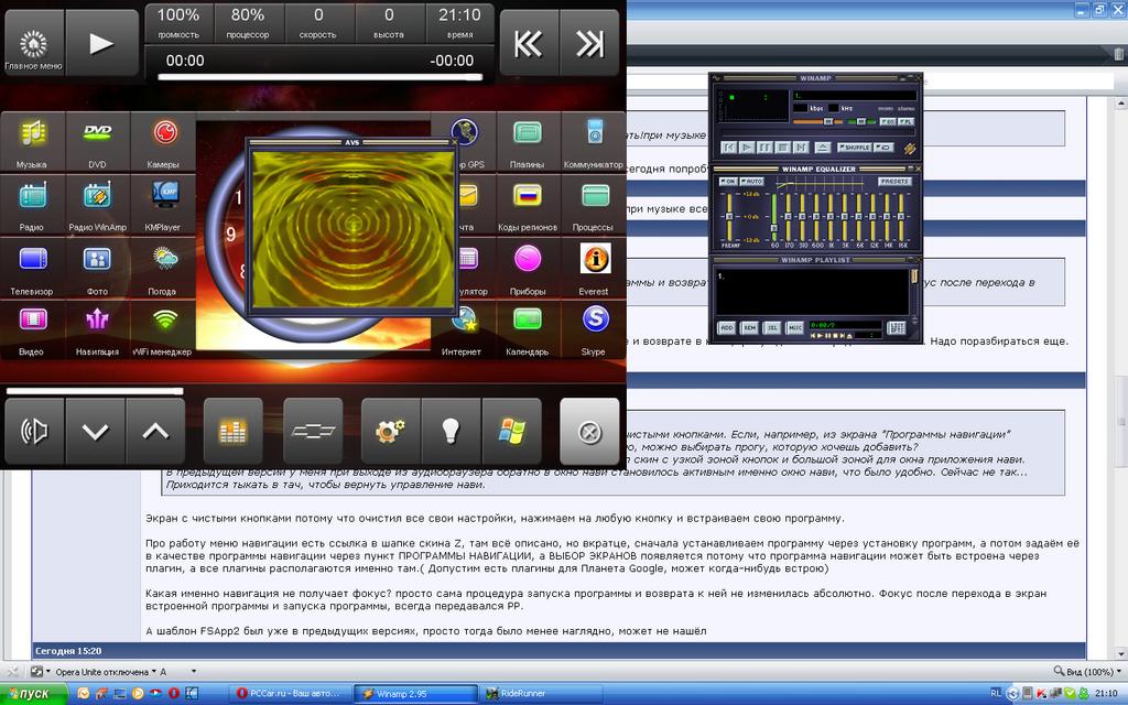 может и у меня что то не то потому что радио у меня УСБ LART и работает оно криво звук только стерео выходит 5.1 не работает.и еще вопрос панель приборов встроить есть окно чтоб управление было внизу панели?если делаю окно то что сверху и снизу панель не полностью видна снизу обрезана