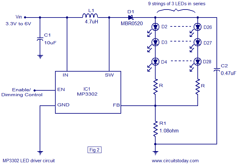 Драйверы подсветки по типу бывают Buck и Boost. Те, в которых, например, из 3,3В получается подсветка 9В - Boost, там где из 12В - Buck. Они имеют разную схемотехнику. Классический Buck выглядит так Вложение 38041 Boost выглядит так Вложение 38042 К чему я это говорю. Есть матрицы, в которых группы состоят из 6 или 8-9 светодиодов, т.е. рассчитаны на напряжение 18 или 24-27В. Такие довольно часто встречаются среди нетбуков. Так вот, как бы хорошо не стабилизировал ток buck драйвер, но подсветка такой матрицы от него, увы, даже не моргнет, потому, что понижающий драйвер не обеспечивает 18 или 24 В. Он способен из 12 сделать только 6-9В. А для таких матриц нужен boost драйвер. |