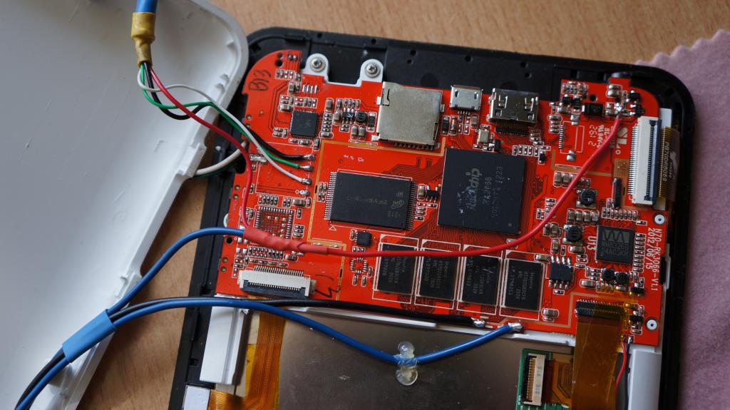 Все питается от БП. На фото видно, что от него идет два выхода. Один к планшету, другой в хаб.