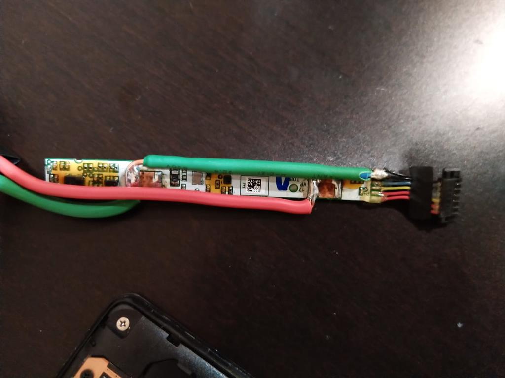Вложение 51337 Вложение 51338 Перед пайкой "пятак" чистим без фанатизма ластиком до блеска, наносим флюс (лучше безотмывочный) и облуживаем припоем контактную площадку. Делать это нужно паяльником с очень тонким жалом. Провод рекомендую МГТФ 0,07-0,12. Он с фторопластовой изоляцией, которая не плавится при пайке, да и провод очень тонкий, прочный и гибкий. Вложение 51346 Фото взято из интернета. Провод перед пайкой зачищаем, надрезав по кругу изоляции канцелярским ножом (без особого нажима, что бы не порезать саму жилу) - получается достаточно ровный срез без особых "лохмотьев". Облуживаем зачищенную часть, сгибаем провод у самой изоляции под прямым углом и обрезаем, оставив кончик в 1 мм. Если есть фен, то можно прогреть плату перед пайкой контакта паяльником, выставив температуру в 200 С и минимальную скорость потока воздуха - этим повысим шансы не оторвать площадку, перегрев паяльником точку пайки. Наносим флюс на контактную площадку и приставив к ней кончик провода (для этого и обрезали под прямым углом, что бы провод без усилий соприкасался с контактной площадкой) паяем одним движением. Перегрев не допустим - очень тонкие проводники и сам "пятак". Вложение 51343 После промывки места пайки (несмотря на безотмывочный флюс - мыть обязательно) фиксируем провод скотчем и пропускаем его рядом с разъёмом для наушников (в углу, как раз есть нужное отверстие) на противоположную сторону платы. Вложение 51345 Вложение 51339 Поскольку пайка выступает над плоскостью платы и при обратном монтаже в этом месте упрётся в алюминиевую раму планшета, нужно сделать небольшое углубление в этом месте. Я использую для этого бормашину... Вложение 51340 После установки платы на место на её верхней части также фиксируем провод скотчем. Вложение 51336 Второй метод - пайка на контакт керамического конденсатора рядом с разъёмом шлейфа кнопок. Вложение 51344 Провод подготавливаем аналогично первому варианту и паяем так же в одно касание. Вложение 51341 После отмывки фиксируем скотчем. |