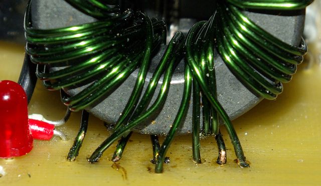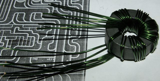 На всякий случай. Впаял. Меня только, все-таки смущает, что реально кол-во витков - не 4х6+2х8, а разное по разным обмоткам из-за перекидывания провоодов. Т.е. почти 7 и 9, хотя до впаивания - 6 и 8, ну может с небольшим хвостиком. Проверка платы и пробные пуски - завтра, т.е. днем :big:. Сейчас спать... |