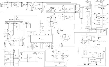 Хочу немного предостеречь. Эта плата плохо запускается (с 5-го - 20-го раза) с БП SL Lite, cхема которого выложена на нашем сайте. После пуска вентиляторы крутятся, но бивис не инециализируется. Все енто связано с немного не корректной реализацией сигнала PG в Lite версии БП. Вообщем я решил данную проблему следующим образом, выкладываю маленькую схемку на LM393. http://pccar.ru/attachment.php?attac...1&d=1188480225 2+5-я ноги LM-ки идут на 2-ю ногу TL494 6-я нога припаивается туда же, куда идет провод от АТХ разъема PS-ON Vref идет на 13,14,15 ногу TL494 Провод от АТХ разъема PG отпаиваем от БП и припаиваем к 1-й ноге LM-ки Вроде все, цена переделки 15-ть руб. |