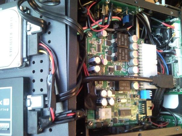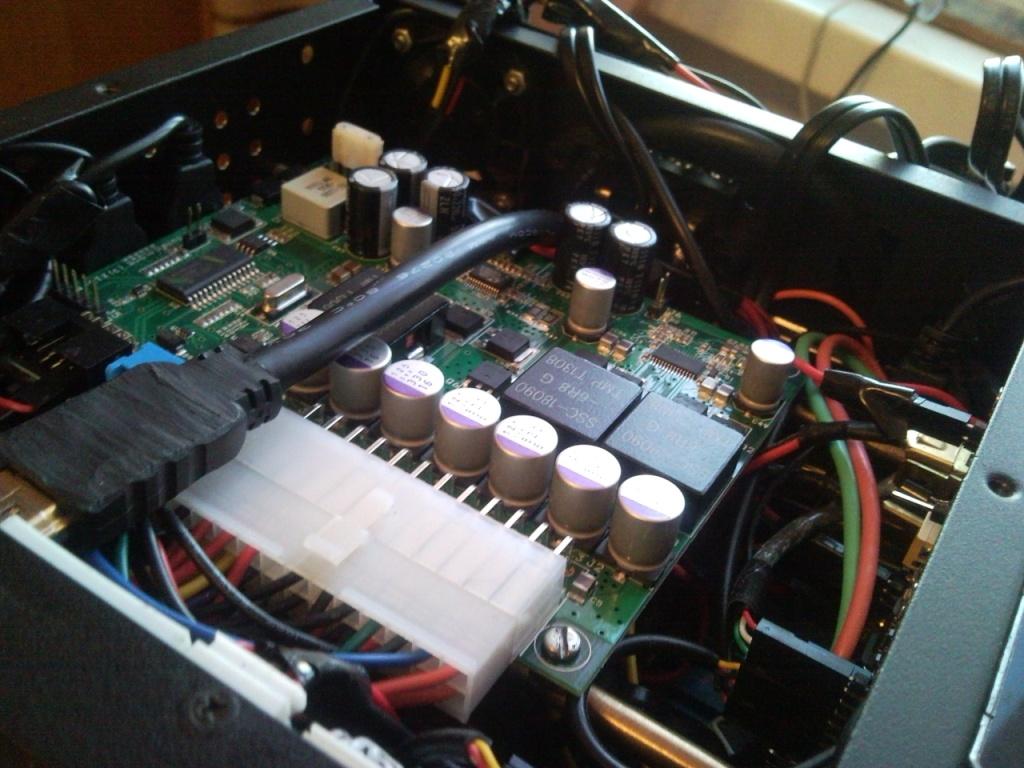Блок питания крепил над материнской платой на такой высоте , чтобы не мешал жестким дискам .Укоротил провода ( разъем M4-ATX находится над разъемом питания материнки).А разъем питания M4-ATX вынес на заднюю стенку.Все подключения сделал через PowerControl v.2.0(на фото он справа на боковой стенке). По поводу теплоотведения,установил на заднюю стенку вентилятор 40мм.2 DIN предназначен для киа соренто . В нише ,где ставится 2 DIN проходят каналы кондиционера. Так в них просверлил отверстия для обдува корпуса.Так я решил проблему охлаждения .Вложение 29608 Вложение 29609 |
