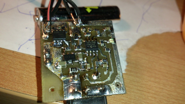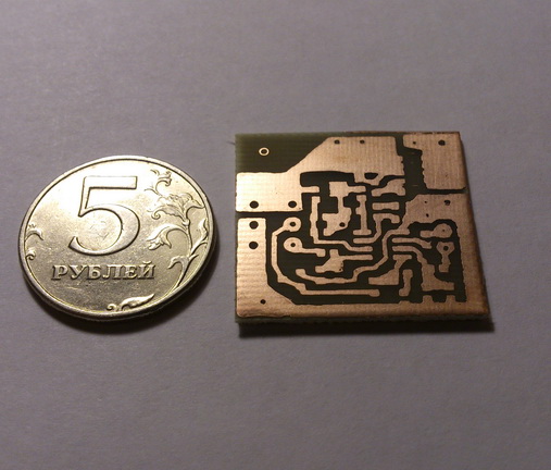 Пока только плату вытравил. Фоторезист только просроченный оказался, качество не очень получилось, но для испытаний хватит. Еще всплыл один косяк - размер разъема не расчитал - поправлю. Вложение 31523 Вложение 31524 |