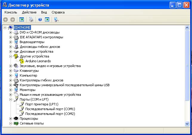 По поводу скриншотов с устройствами - неужели не насторожил жёлтый восклицательный знак возле Ардуины на первом скриншоте? Это значит, что нет в системе дров под Ардуину в режиме бутлоадера. Про это нет в моей инструкции, ибо у меня дрова были до этого. Дрова идут вместе с Ардуино ИДЕ и без них Вы вообще ничего в неё не зальете. Как поставить IDE есть здесь http://arduino.ru/Arduino_environment Вы хотя бы светодиодом моргали из Ардуины? Если нет - выполнить переустановку дров и помигайте светодиодом на плате. http://arduino.ru/tutorials/blink Если на этом этапе все будет ок, то в шаге 4 моей инструкции будет порт бутлоадера Arduino bootloader и рядом номер порта, который нужно использовать при прошивке. |