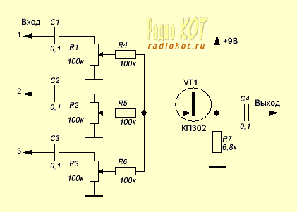 Вложение 36744 Транзистор бери КП303А, на нем не наблюдалось (на осциллографе) заметных искажений при подаче 9-15ВВ. Ну, и один канал отрежешь, тебе же только 2 надо. |