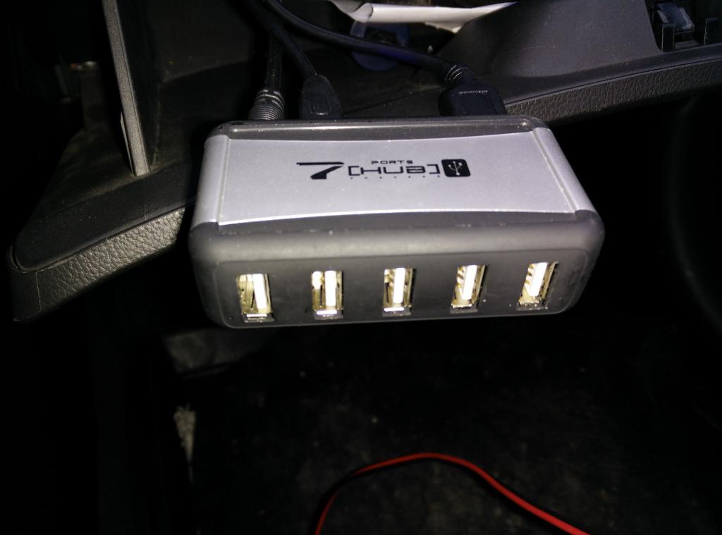 Изя подключена к хабу, а хаб включается уже вместе с зажиганием. Изя она и будет рядом с планшетом, точнее в бордачке.