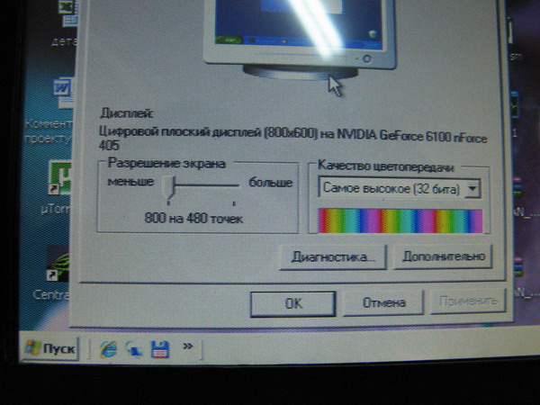 Вложение 18301 Вложение 18297 Вот что теперь в настройках Вложение 18299 А это на раб. столе при 800*480 Вложение 18300 это при 800*600 Вложение 18298 особо разници не видно |