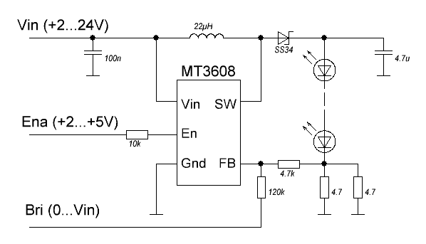 Питание 2...24В (соответственно и верхнее уверенное значение падения на LED до 48В), ток ограничения по выходу 4А. Все мелко и аккуратно - MT3608 в корпусе SOT23-6. Наоборот прекрасно регулируется аналогом, а если ШИМ - тогда его придется "выпрямлять".