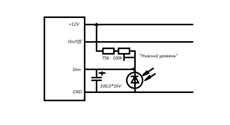Для этого очень хорошо подходит драйвер, который входит в китайский комплект для замены ламп CCFL на светодиоды в ноутбуках. Выглядит он так Вложение 38238 Драйвер очень легкий и аккуратный. Его размеры 73*9*5мм. Нижняя плоскость абсолютно гладкая и никакие элементы на ней не распаяны. Очень удобно крепить его на 2-сторонний скотч прямо к обратной стороне матрицы. Вот его схема Вложение 38239 Драйвер имеет 4 вывода для подключения: - напряжение питания от 9 до 25В (красный провод) - enable (включить - к "+" питания) (желтый провод) - dimmer (на "массу" - максимальная яркость) (белый провод) - общий (черный провод) Тип разъема, его распиновка и управление полностью совпадают с разъемом управления подсветкой "народного" контроллера на RTD2660H за исключением "белого" провода. Контроллер им не может управлять, а мы - можем. Предлагаю два варианта управления: ручной (потенциометром) и автоматический (при помощи фотоэлемента). Делается все по этой примитивной схеме Вложение 42280 а) Ручная регулировка. резистор R* подбирается из соображений необходимой минимальной яркости. Выходы регулировок яркости у всех приборов (контроллеров, которые имеют такой выход), к которым должна подключаться эта линия, имеют диапазон регулировки 0...3,3В или 0...5В. Других не бывет. Резистор можно и вообще не ставить (вывод драйвера окажется в минимальной яркости подтянут к +12В, не сгорит), но в этом случае потенциометр будет производить регулировку всего диапазона яркости максимум на половину а то и на треть своего оборота. Так что я думаю, резистор нужен, и его номинал должен быть минимум 1,1..1,2 номинала самого потенциометра. Вот тогда регулировка будет производиться на всех 270 градусах поворота. Опять же, напрашивается вопрос: какой смысл регулировать яркость до полного погашения подсветки? Так что можно смело ставить резистор в 2-3 номинала потенциометра. б) Автоматическая регулировка. В качестве фотоэлемента можно поставить любой фотодиод или фоторезистор, работающие в видимом спектре. Хорошо подходят отечественные от систем ДУ советских телевизоров (ФД263, ФД230). Можно экспериментировать с любыми имеющимися в наличии. Транзистор... в принципе любой высокочастотный NPN и допустимым напряжением Uкэ не менее 30В. Из наших можно брать КТ3102, КТ342. Из импорта C9014, C1815, C945. Верхний резистор (от 12В к фотодиоду) включен именно так из соображений безопасности - фотоэлемент выносится куда то на проводах и этот резистор позволяет избежать неприятных последствий от случайного контакта какого нибудь проводника с "массой" автомобиля. Конденсатор в базе транзистора предотвращает резкое изменение яркости подсветки матрицы от случайных резких изменений освещенности фотоэлемента. Резисторы, помеченные звездочками, предназначены для первичных регулировок. Резистором 4,7к подбирается яркость экрана при полностью затемненном фотоэлементе, а резистором 100кОм подбирается оптимальный режим под чувствительность фотоэлемента. Например при его сильной чувствительности достаточно 100кОм, а в случае слабой - необходимо увеличить сопротивление. Например для фотодиода ФД263 нужно поставить порядка 470-510кОм. Не стоит пытаться сделать линейную регулировку во всем диапазоне - это проблематично. Достаточно чтобы была регулировка от состояния "яркого солнца" до "пасмурно". Наиболее качественный результат получается при размеще