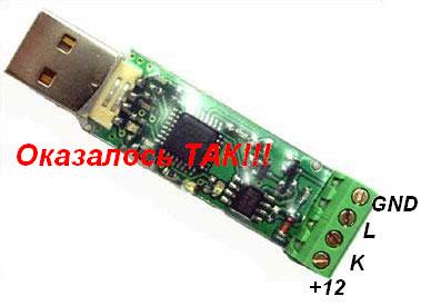 Был куплен k-line адаптер BM 9213 вот такой: http://www.masterkit.ru/main/set.php?num=1168