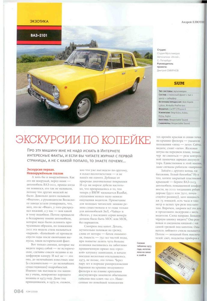 Да, действительно проект обсуждался, только без участия автора. Сильно занят был. Проехали с автомобилем всю Россию: Волгоград, Ессентуки, Ростов-на-Дону, Москва (3 раза), Питер и в итоге Голландия Роттердам. Сейчас в Питере в выходные будет выставка ретромобилей. Теперь готов отвечать на кучу вопросов. Проект получился очень удачный, а для скептиков типа (из г... конфетку) обьясняю: проект коммерческий, рекламно-пиарный. В 2010 году исполняется 40 лет выпуску первой копейки с конвеера. Между прочим европейцы просто тащились при виде нашего автомобиля, у них ретро тема в моде.