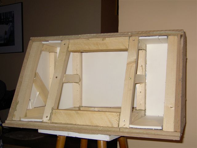 Вот, сделал заднюю панель которая буит крепиться на саб. На ней расположено все хозяйство - усил, комп, кондер, тв-тюнер и звуковуха (последние два под крышкой). Фу! Заколебался :)
