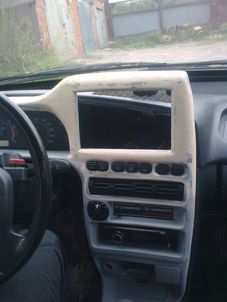 В наличии ваз 2109 с торпедой от ваз 2113.Решено поставить монитор стационарно, т.к. было сделано несколько вариантов выдвижных мониторов и все они сильно болтались на кочках. Процесс доработки панели немного отличается от предыдущих проектов на форуме. Это связано с тем, что мне все таки не хотелось убирать воздуховоды с центральной части + чем выше монитор тем меньше отвлекает от дороги (ИМХО). 1. Примерка http://www.pccar.ru/attachment.php?a...1&d=1314513815 2. Врезаем в панель заранее изготовленный каркас для ЖК матрицы http://www.pccar.ru/attachment.php?a...1&d=1314513815 3. Крепим все на саморезы к пластику http://www.pccar.ru/attachment.php?a...1&d=1314513815 4. Покрываем все монтажной пеной http://www.pccar.ru/attachment.php?a...1&d=1314513815 5. После высыхания пены срезаем лишнее и придаем форму http://www.pccar.ru/attachment.php?a...1&d=1314513815 6. Покрываем стеклопластиком http://www.pccar.ru/attachment.php?a...1&d=1314513815 Заметка: перед наложением стеклопластика советую все-таки сперва заполнить пустоты, образовавшиеся в пене, шпаклевкой и выровнять. Тогда стеклопластик ляжет ровно и плотно. 7. После грунтовки примерка в машине http://www.pccar.ru/attachment.php?a...1&d=1314513815 8. Шпаклюем шкурим, шпаклюем шкурим :wacko2: и снова примерка http://www.pccar.ru/attachment.php?a...1&d=1314513815 8.1 Ну как же без помошника в этом трудоемком процессе :derisive: http://www.pccar.ru/attachment.php?a...1&d=1314513815 9. Грунтуем ... Советую покрыть грунтом 2 раза, после ошкурить шкуркой не ниже 1000 http://www.pccar.ru/attachment.php?a...1&d=1314513815 10. Покрываем краской, в моем случае матовой из балончика одним слоем http://www.pccar.ru/attachment.php?a...1&d=1314513815 11. Устанавливаем в машину http://www.pccar.ru/attachment.php?a...1&d=1314513815 Прошу оценивать как работу не профессионала, а новичка коем я и являюсь. Получилось достаточно удобно и практично - воздуховоды все на месте, кнопки перенесены под монитор, высота не мешает водителю... Комп собран и установлен временно в бардачок пока собираются подиумы в багажник. Фотки и состав системы выложу через пару дней ... ЖК матрица PHILIPS от монитора MYSTERY MTV920 диагональю 9.2" осталась от предыдущего проекта (недоделка по причине продажи авто) не могу найти сенсорную панель моих размеров помогите кто может |