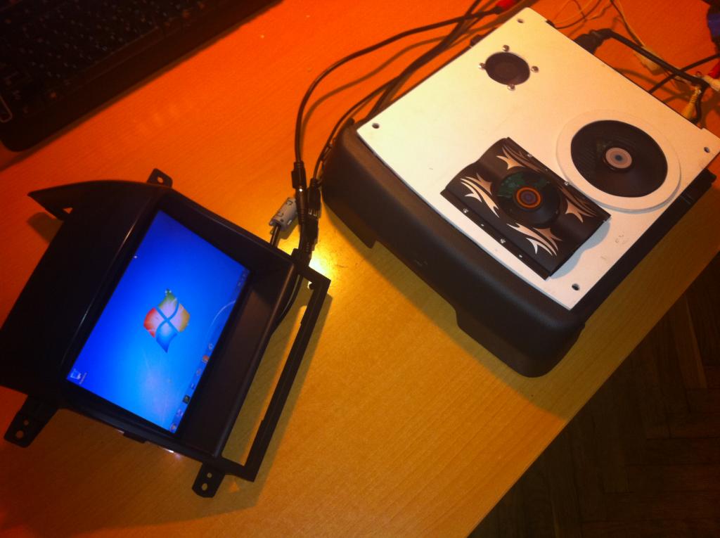 Наконец я решился воплотить даванюю мечту! Установить компьютер в свой авто. Приобрел "стартовый комплект" у puni4 http://forum.pccar.ru/showthread.php?t=15092 Это панель в оригинале Вложение 23797 Разобранная Вложение 23798 Вложение 23800 Монитор решил устанавливать в верхней части где располагался дисплей климата и небольшой бардачок. Корпус монитора разобрал, изготовил переходную рамку из подручных материалов Вложение 23799Вложение 23801Вложение 23802Вложение 23803Вложение 23804Вложение 23805 Обклеил ее виниловой пленкой под карбон Вложение 23806Вложение 23807 Получился вот такой результат Вложение 23808Вложение 23809 Комп планирую установить в перчаточном ящике под передним пассажирским сидением. |