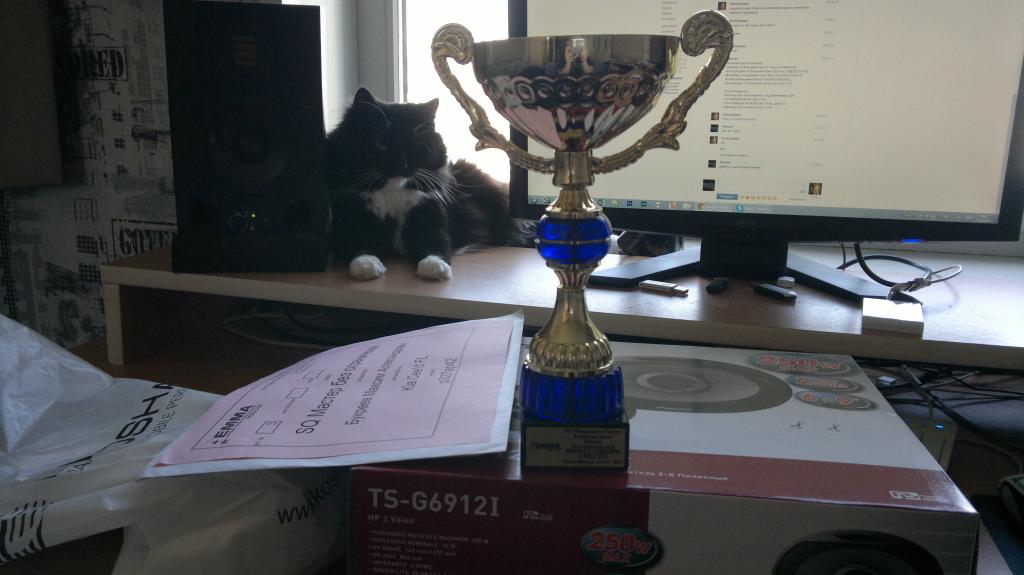 Надпись на кубке: XVI Чемпионат России Качество звука Мастер Без ограничения Финал Сибири 3 место Новосибирск, август 2013 |
