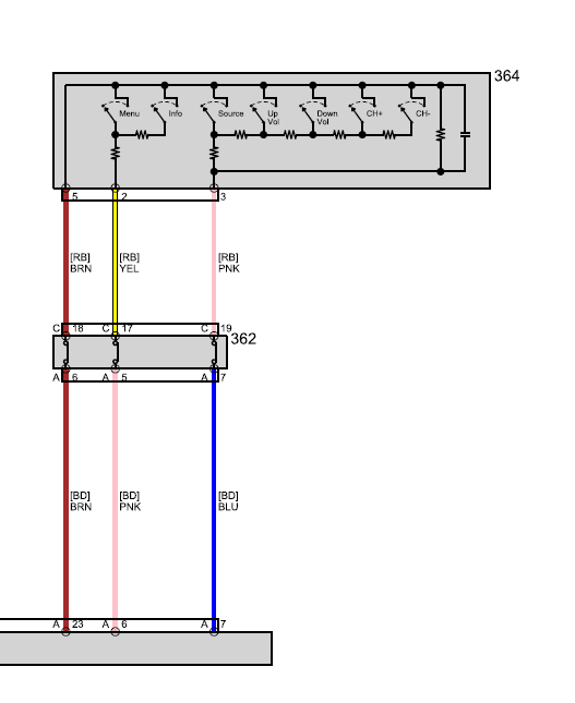 оно. под номером 364 в файле audio 5d.pdf на странице 6. Только не пойму почему три провода от кнопок выходит.... Надо к электрику тебе...