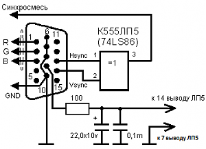 Вот вы какие все таки упрямые! Ну не будет хорошей картинки ВИДЕО через врезку. Ее в теории не может быть. Что есть синхросигнал (по сабжу): это временной интервал, когда в процессе сканирования развертки разрешается показать на экране информацию со входов RGB. Видео же - это непрерывный процесс чередования строк и кадров, в течение которых по каждой строке присутствует информация об уровне черного, градации яркости и всего связанного с этим. Все эти доморощенные приблуды "а-ля конвертер VGA в RGB" - полная лажа. Получится в лучшем случае 8-битное изображение, в худшем - 4-битное.