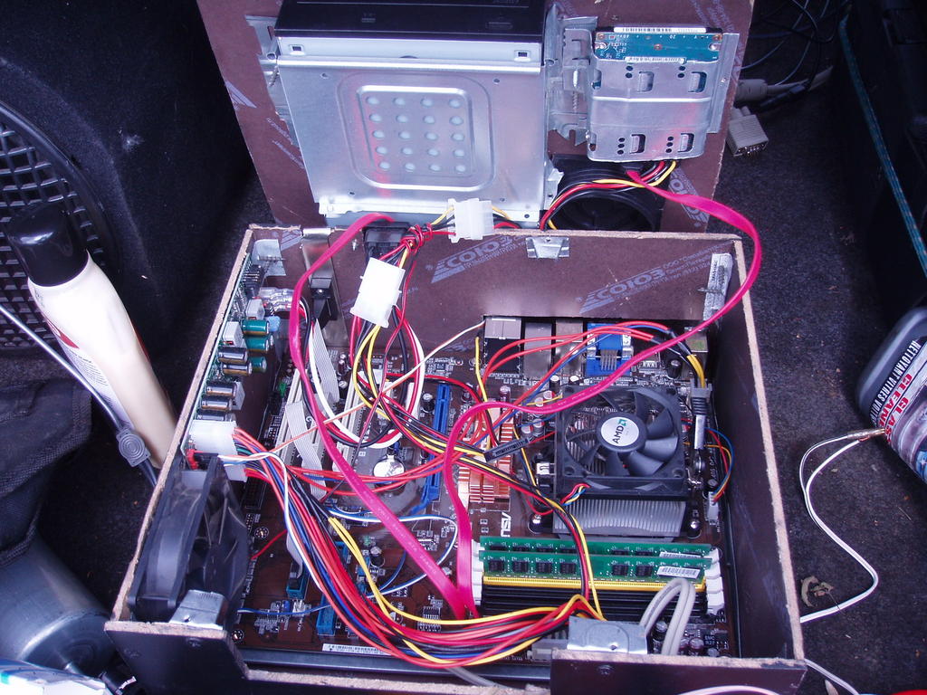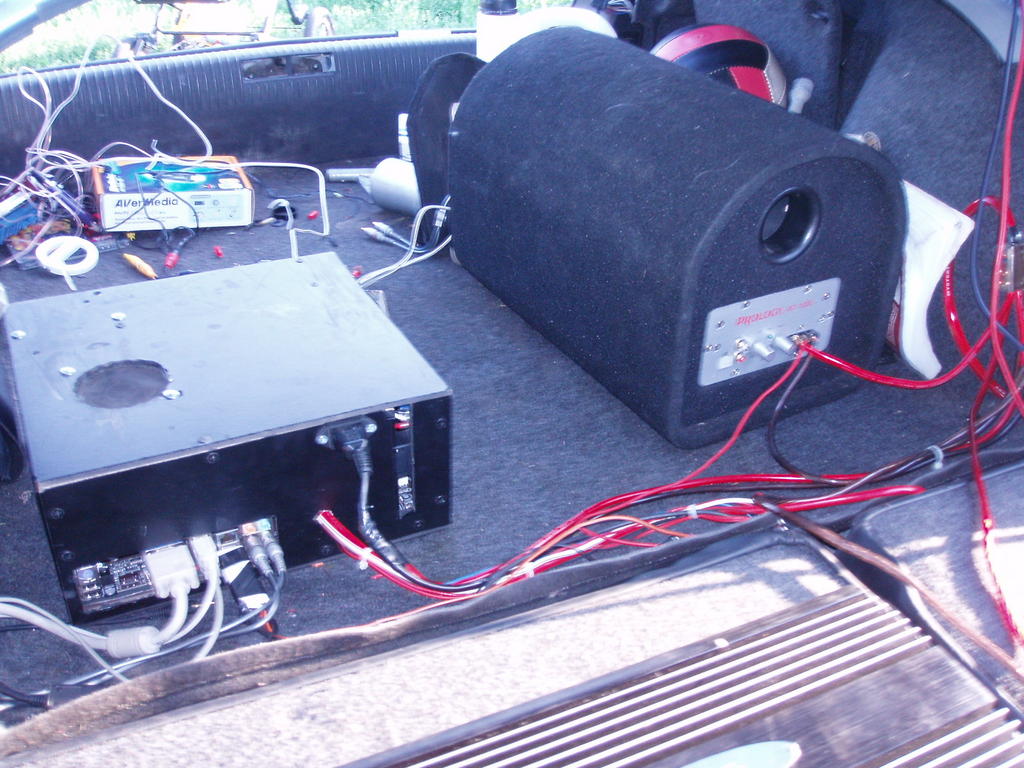 Давно хотел выложить свой проект, но все как-то руки не доходили. В том, что в машину можно поставить комп, задумывался очень давно, но увидел данную реализацию у своего знакомого примерно в декабре 2008 года и загорелся. Нашел в интернете данный сайти примерно два месяца читал, знакомился и выберал комплектующие. Материнская плата, процессор Atlon 64X2 5200+, оперативная память на 2 Гб у меня уже были. Встал вопрос о выборе монитора, сначала хотел поставить Prology 1/2 din, потом передумал и купил Lilliput 889 с автоматическим переключением на камеру заднего вида (изначально камера заднего вида не планировалась, но так как так как в наличии у продавца не было без данной опции, пришлось купить (не пожалел) Вложение 13576 материнка Вложение 13577 После приступил к инсталяции. Так как у меня passat 1997 года, у меня панель не была расчитана на 2 din (сверху стоял климат контроль, ниже магнитола 1 din, ниже полка, фото не сделал:sad2:). На разборе купил панель от passat b5+ с местом под 2 din, после чего поработав немного кусачками и паяльником, поставил данную панель в машину. Монитор разобрал, матрицу прикрепил к панели с тыльной стороны, с наружи прикретил рамку, которую вырезал из корпуса монитора, вот как получилось (в процессе установки фото не делал): Вложение 13571 Вложение 13572 корпус для системного блока сделал из строительной панели типа ДВП Вложение 13573 закрепил в нем материнскую плату, на боковую сторону прикретил БП М2-АТХ Вложение 13574 Проводку в машине сделал следующим образом: от АКБ проводом 4Ga до багажника провел "+" и проводом 8Ga провел "-" (провел по левому порогу), в багажнике уже развел на потребители проводами 8Ga: на усилитель, сабвуфер, компьютер, монитор. Вложение 13575 VGA-кабель, провода от колонок провел по правому порогу. Для навигации был приобретен GPS: BU-353, который поставил под заднюю полку под задним стеклом Вложение 13570 Для прослушивания радио был приобретен Lart, к которому был припаян провод штатной антенны с небольшой доработкой, так как антенна активная, руководствуясь данной статьей http://www.passat-b5.ru/index.php?op...sk=view&id=120 однако всеравно качество не очень, ловит максимум 6 радиостанций. Вложение 13578 для диагностики авто был приобретен в магазине "Чип и Дип" k-l адатер Мастер Кит NM9213, который подключил к com-порту, повезло, что в материнке был выход com, через USB переходник работать отказывался. Вложение 13580 Вложение 13579 Так как в мониторе был предусмотрено автоматическое переключение на камеру заднего вида, то данная функция была реализована в машине: купил Парковочную камеру RV-C270E, протянул провод от зеленого провода монитора к лампочке заднего хода, питание камеры тоже взял от лампочки. Камеру встроил в плистиковую накладку над номерным знаком. Вложение 13581 Програмное обеспечение: Windows XP (SP3) centrafuse 2.0 IGO 8 Vag-com Вложение 13582 По поводу реализации громкой связи хочу отметить, что у меня Iphone 3G, когда стояла прошивка в телефоне 2.*, подключался к centrafuse без проблем, звук в колонках был, но была задержка и собеседник плохо слышал меня (возможно плохой микрофон). После того как прошил Iphone на прошивку 3.0 подключаться к centrafuse не хочет ни в какую, однако в Bluesoleil согласовывается. Пока данную проблему не устранил. Если будет время, планирую поставить видеокамеру вперед и подключить ее к AverTV Hybrid TV+FM Volar, который при был приобретен по глупости и планировал использовать для радио, но в связи с тем, что с centrafuse о