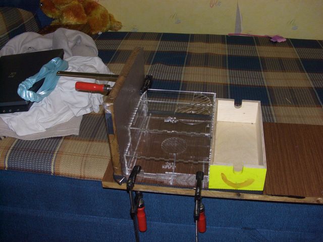Долго думал как собирать корпус. На этапе моделирования идеи были разные, но как всегда верх взяла лень. Решил клеить .-) долго придумывал, как склеить стенки под 90 градусов. В итоге сварганил подобие полки и алга...