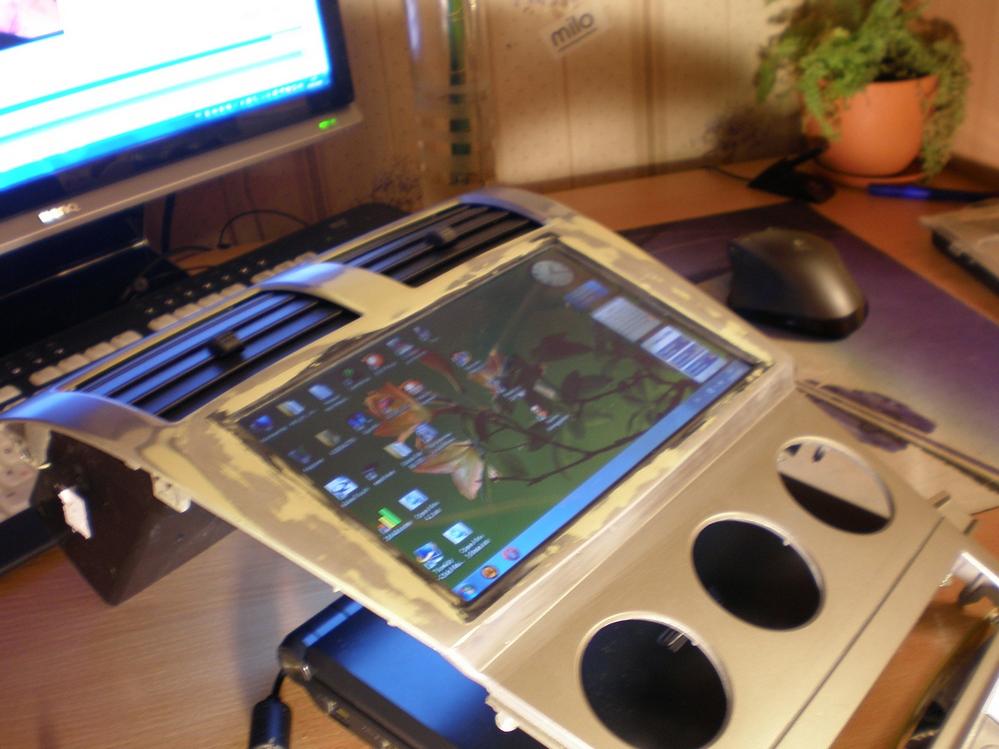 Набор комплектующих: - нетбук Asus EEE PC 900 - 8,9" тачскрин резистивного типа - GPS Globalsat BU-353 - Bluetooth 2.0 - Беспроводная 2.4GHz мини клава. - USB OBD II ELM-327 - 7-Port USB 2.0 Hub - USB HDD Seagate 320Gb update: - 2Gb DDR2 ОЗУ - SSD OCZ Vertex2 40Gb SATA2 - Ёмкостной 8.9" тачскрин с поддержкой "мультитач" - Усь Alpine v12 MRV-F407 ---------------------------------------------------------------------- что имеем.. Вложение 26360 Вложение 14703Вложение 14704 Вложение 14726Вложение 14727 ..примерка Вложение 14728Вложение 14729 ...пилим Вложение 14730Вложение 14731 эх..пришлось лишиться горизонтальной регулировки направления потока воздуха (колесики) Вложение 14732Вложение 14733 Лепим, примеряем Вложение 14734Вложение 14735 Шпаклюем...шкурим.. Вложение 14736Вложение 14737 Bluetooth, и контроллер тача Вложение 14738Вложение 14740 Вложение 14741Вложение 14744Вложение 14743 |