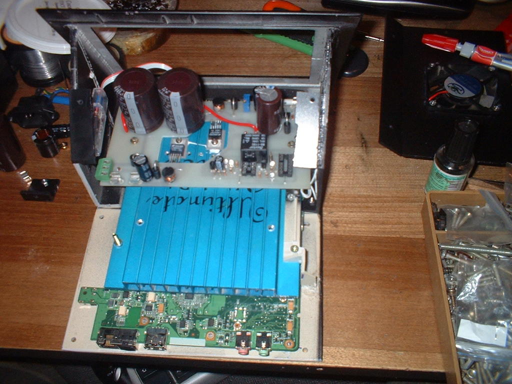 Все время думал поставить за место её CARPC и вот пришло время, благодаря нашим дорогам пробил коробку, - теперь времени хватит на установку компьютера. Взял газету и нашел Asus EEE PC 4g за 4500р. Магнитола продана, ежик куплен и пора начинать! Место в полне хватает, даже не надо шлейф монитора резать. Вложение 15833 Вложение 15834 Вот подготовлена заготовка лицевой панели. Вложение 15835 Системная плата будет установлена сразу за дисплеем: Вложение 15836 Вложение 15837 Установлен радиатор от жесткого диска. Вложение 15838 Вложение 15839 На него также будут крепиться стабилизаторы БП. |