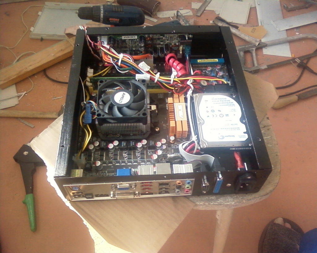 Пациент: Вложение 17359 1.Монитор: VGA LILLIPUT GL859-80NP/C/T 2.Материнка: ASUS M3N78-EM (RTL) SocketAM2+ 3.Процессор: AMD Athlon II X2 245+ 4.Память: Kingmax 2GB 5.Жесткий диск: 2.5" Seagate SATA 320GB 6.USB-HUB: Gembird UHB-C247 7port 7.GPS: GlobalSat BU-353 8.Радио: LART FM 9.Интернет: Мегафон USB-модем 10.Блок питания: M2-ITX 11.Доп. питание: +5в DC/DC преобразователь для питания HUB и перифирии 12.Камера з.х.: RV-C270E 13. Камера: web-камера A4Tech PK-836MJ (для опытов и отладки ПО) 14. Клавиатура: Gembird миниатюрная с подсветкой 15. Корпус: Samopal За пункты 1, 10, 11, 12 отдельная благодарность Chip'у Сразу извиняюсь за качество фото. Делал тем, что было под рукой (обычно телефон). Первый запуск дома: Вложение 17361 Переезд в новою спальню откладывается, изготовление корпуса :smile1:: Вложение 17362 Вложение 17363 Корпус готов и всё запихано: Вложение 17365 Вложение 17364 Как было: Вложение 17360 Сделал вывод, что десятое семейство ВАЗов самое гиморойное для встраивания мониторов. :yes4: Чтобы попасть в панель, надо снимать всё торпедо, что и было проделано. Сразу сделал полную шумо- виброизоляцию: Вложение 17366 Перенос сервопривода управления заслонками печки (упирался в монитор): Вложение 17367 Первый запуск в авто: Вложение 17368 Изготовление рамки, попытка номер раз...: Вложение 17374 Немного Офф. Недавно заметил, что установка компа в машину была предначертана давно, еще при получении номеров :big: : Вложение 17369 Как то так: Вложение 17373 Вложение 17370 Вложение 17371 Вложение 17372 Звук: Спереди Ultimate 6.5" 2-way, сабвуфер Audiobahn 12". Продолжение следует...:yes4: |