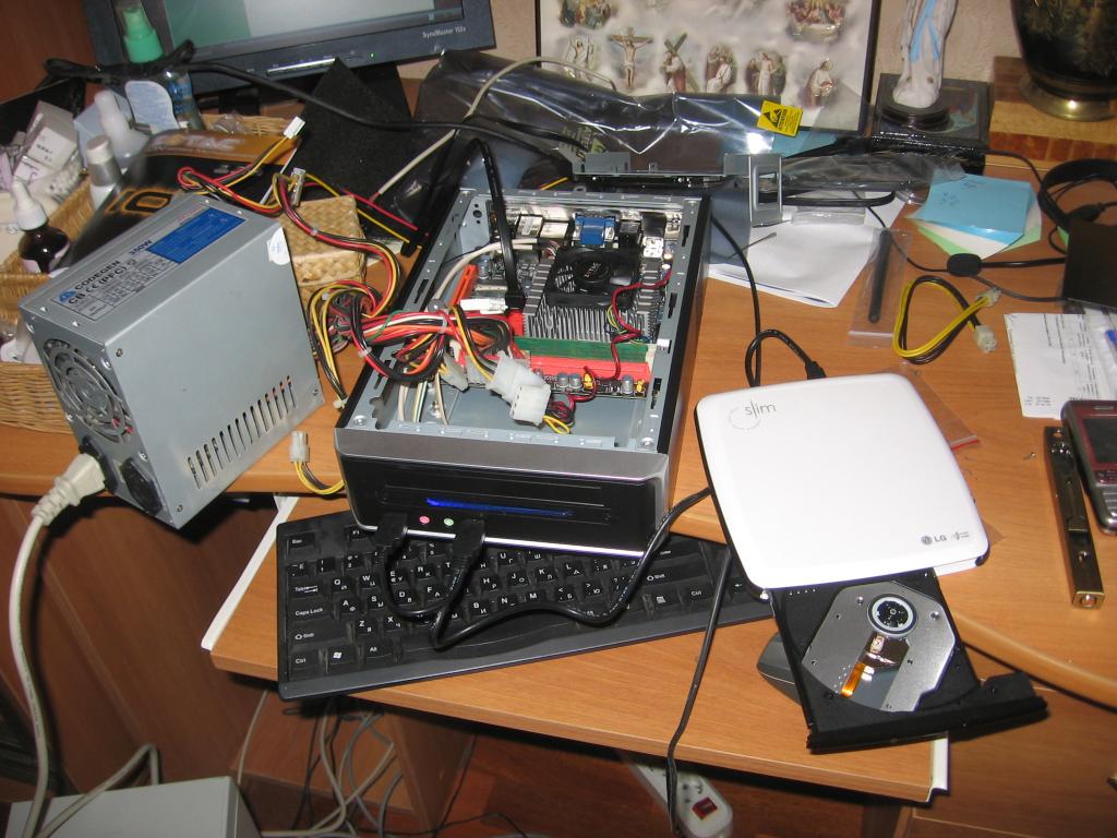 Силовые провода не рекомендуют вести рядом со звуком - по разным бортам и ли по центру хотя бы. Удачи в продолжении и окончании проекта... Хотя у меня он никогда не заканчивается.. :)) Кстати - этот Ипсум я видел - если не ошибаюсь, фотки взяты с объявы о продаже - он там очень долго продавался. Почему не возникло желание купить не внешний ДВД-привод, а ноутбучный и встроить его в корпус? Вроде корпус как раз и предусмотрен для такого привода. Или ему там что-то мешает? Я домашний комп собрал на mini-itx в маленьком вертикальном корпусе с двд и двд лег как раз на радиатор процессора и закрыл его на треть. Кулер пришлось сместить на свободную часть и переделать крепление кулера |