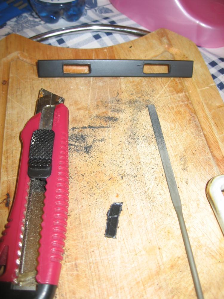 Вложение 18428 Страшно, но отступать поздно... берем панель с блоком климат-контроля и отпиливаем чуть-чуть лишнее сверху... Вложение 18429 Примеряем рамочку и фиксируем ее на супер клей... Вложение 18430 Так как Milliput пластелин еще не приехал, а руки чешуться, то в ход вступает отечественный пластелин холодная сварка.... Им заделывается с внутренней стороны для лучшей фиксации рамки и с внешней стороны замазываются просветы... С помощью шкурки 120 и бормашинки все это дело после застывания зашкуривается... Вложение 18431 еще чуть-чуть и готово к покраске... Вложение 18432 продолжение следует... |