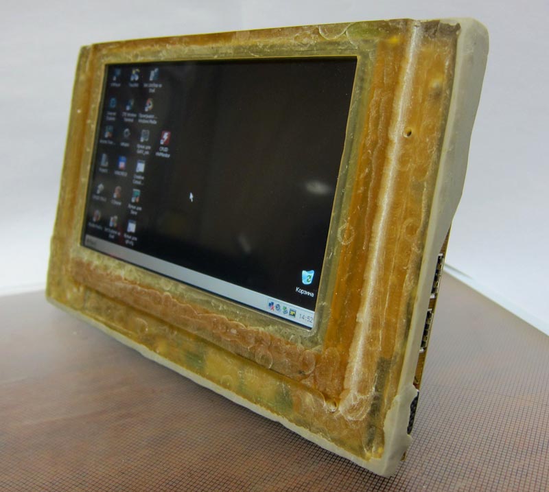 у платы отпилены ушки, (выступы с кнопкой, и разъемом питания :big:) тепло с проца и т.п. передается через терморезинки на пластину. Вложение 18890 Вложение 18891 верхний уровень: тач приклеен к матрице, и залит герметиком. это позволяет зафиксировать нежные шлейфы. и не допустить попадания пыли. Вложение 18892 такой бутерброд Вложение 18893 верхняя крышка Вложение 18894 |