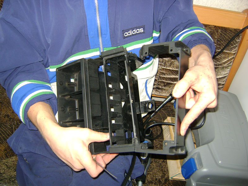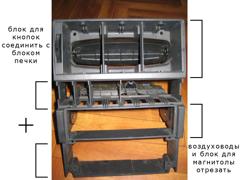 Итак, начнем избавляться от блока воздуховодов и блока магнитолы. Сначала отпиливаем блок переключателей печки.