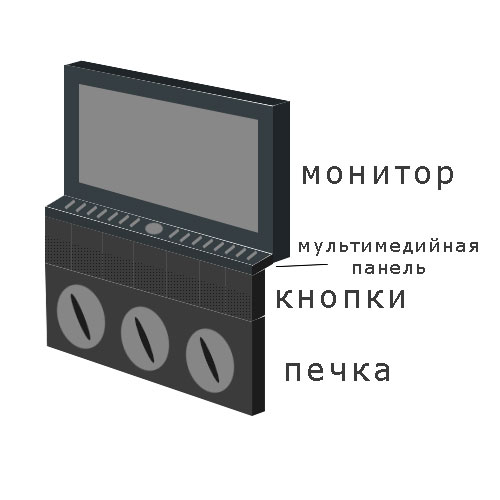 Вложение 19526 Итак, что хочется получить. Компьютер, который будет снимать (видеорегистратор и камера заднего вида), играть (музыку, фильмы), входить в интернет и, конечно, у него должна быть навигация. Обязательно должен быть набор горячих клавиш, чтобы, например, переключение трека или его остановка не занимала время. Так как от магнитолы я избавляюсь, обязательно должен быть регулятор громкости. Под удаление — воздуховоды и место под магнитолу. Вложение 19527 Т.к. мне нужны мультимедийные клавиши, будет изготовлена что-то вроде дополнительной панели (из клавиатуры), которая ляжет перед монитором. Сам монитор будет немного утоплен в торпедо. Я схематично набросал что хочу получить в итоге. Вложение 19528 |